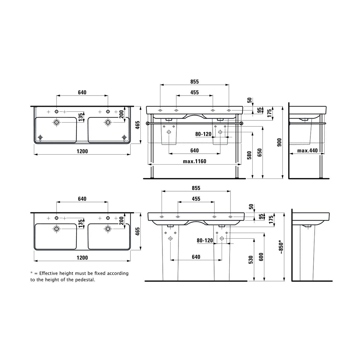 Laufen Pro S lavabo 120x46 cm rectangulaire classique-double blanc H8149660001041