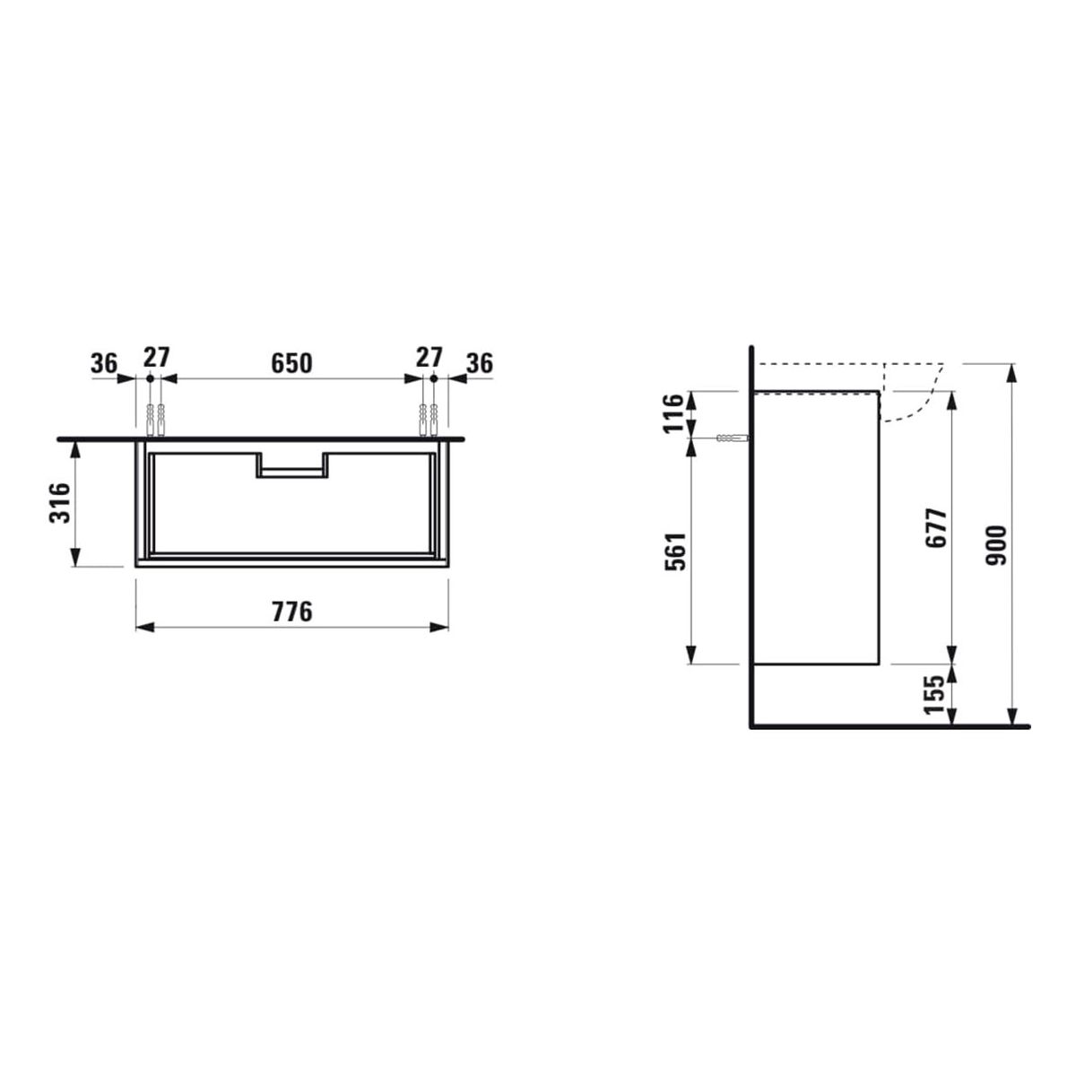 - Type: sous-lavabo suspendu