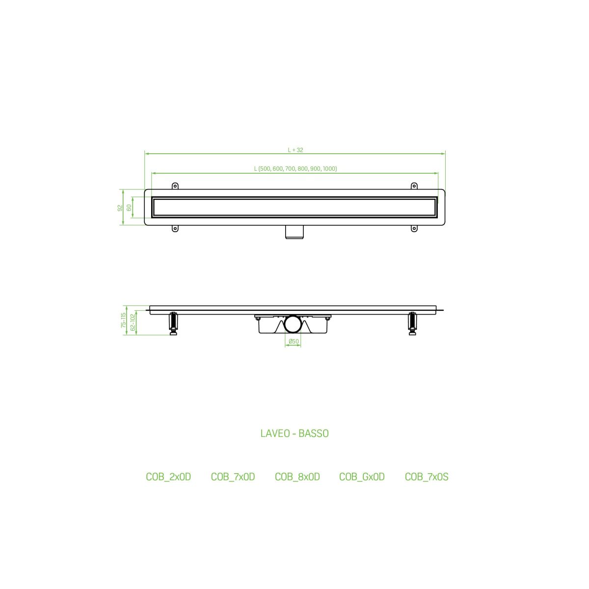 Laveo Basso caniveau de douche avec grille 60 cm noir COB760S