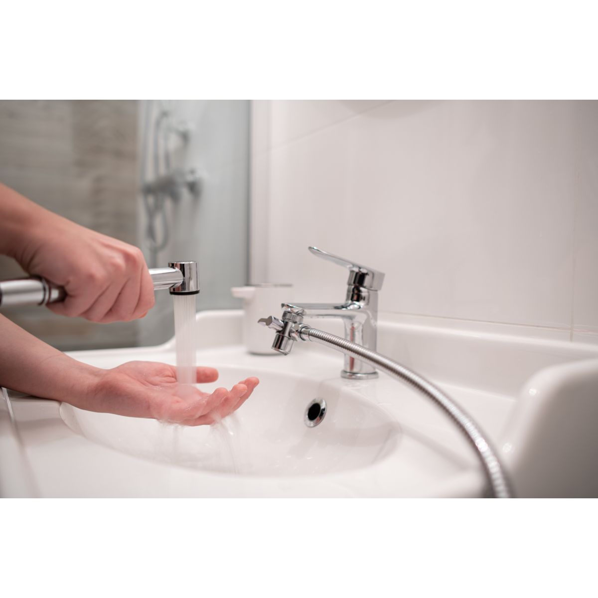- possibilité de raccordement au mitigeur de lavabo avec un raccord supplémentaire G ½