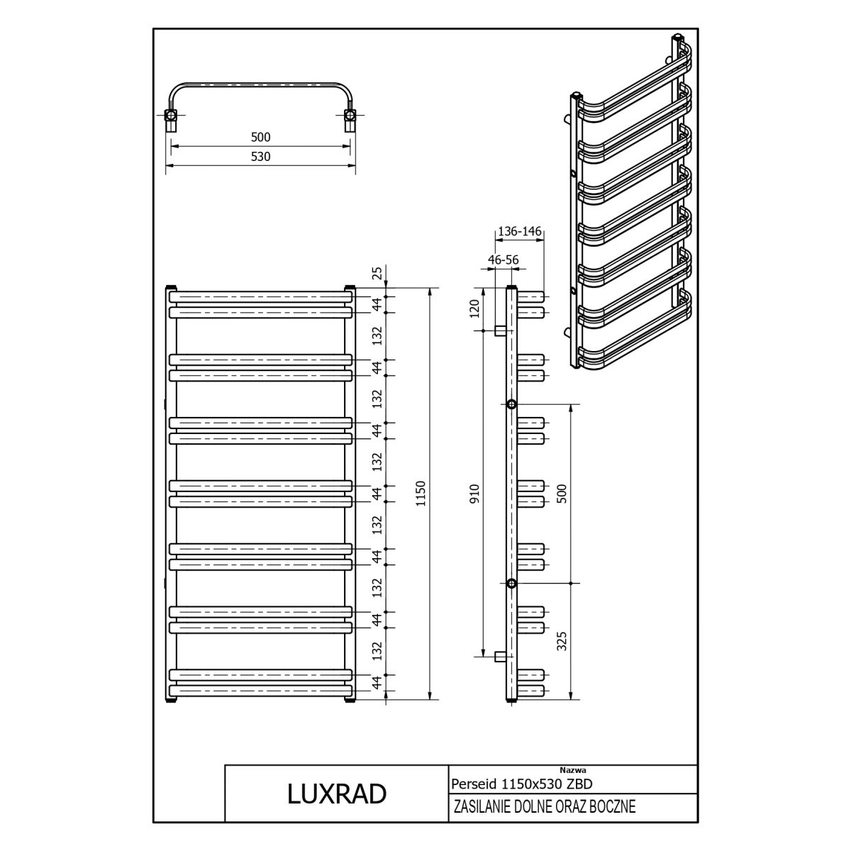 Luxrad Perseid radiateur de salle de bain décoratif 115x53 cm noir PER1150530S040