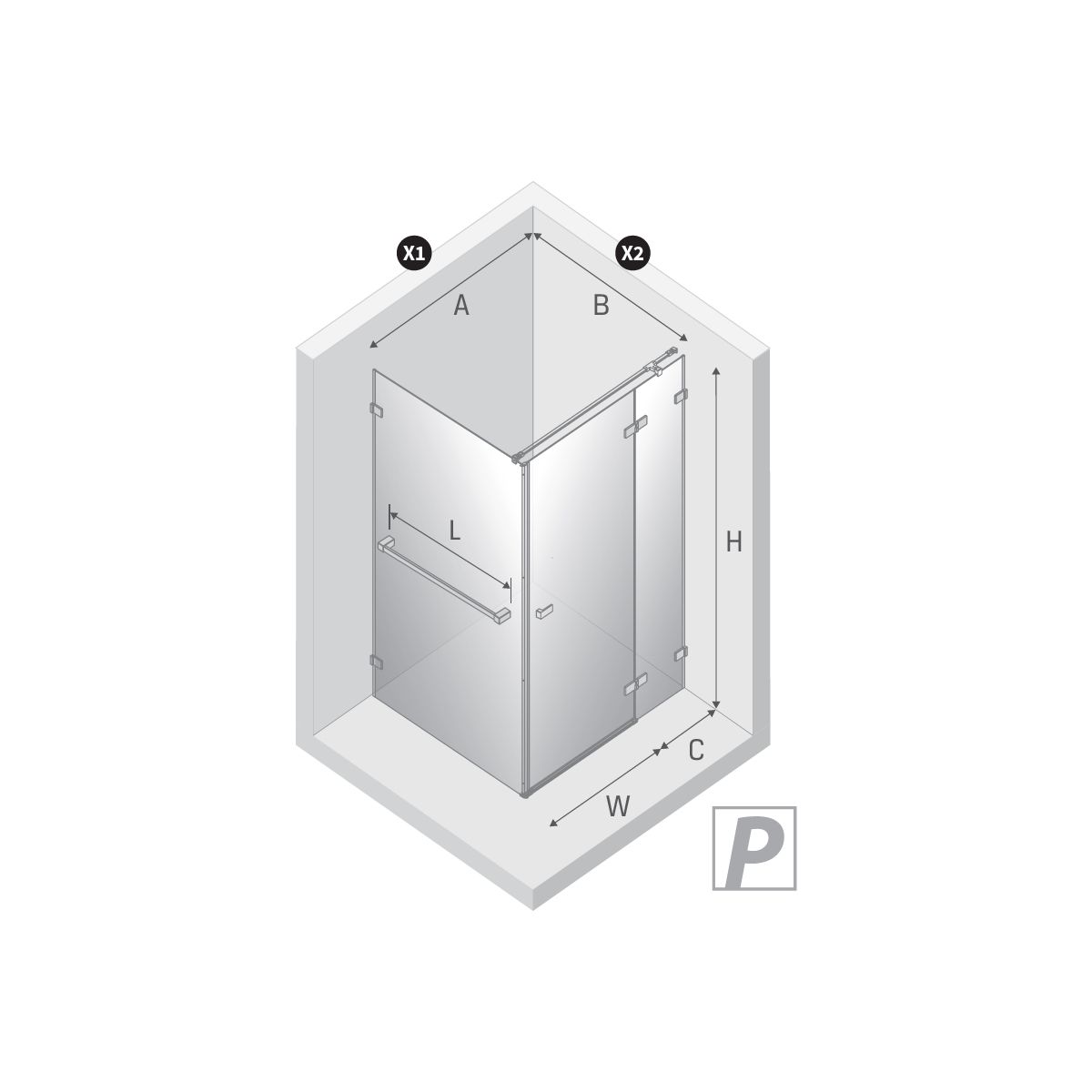 - plage de réglage (X2) jusqu'à l'axe de la vitre de la cabine : 97 - 98 cm