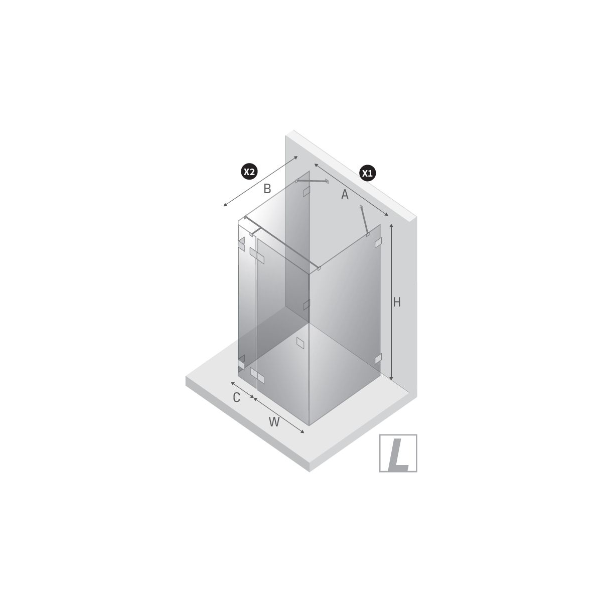 - largeur (X1) jusqu'à l'axe de la vitre de la cabine : 76,4 cm