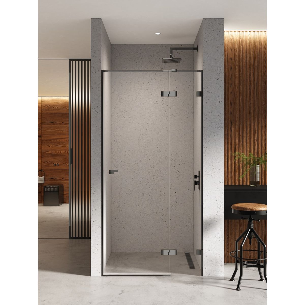 Le modèle Eventa Black Chrome présente d'élégants détails noirs avec une finition brillante. La porte encastrée est en verre de sécurité trempé de 8 mm d'épaisseur avec revêtement Active Shield. Une gouttière située au bas de la porte permet d'évacuer l'eau du verre vers l'espace douche. Le produit peut être installé avec ou sans receveur de douche.
