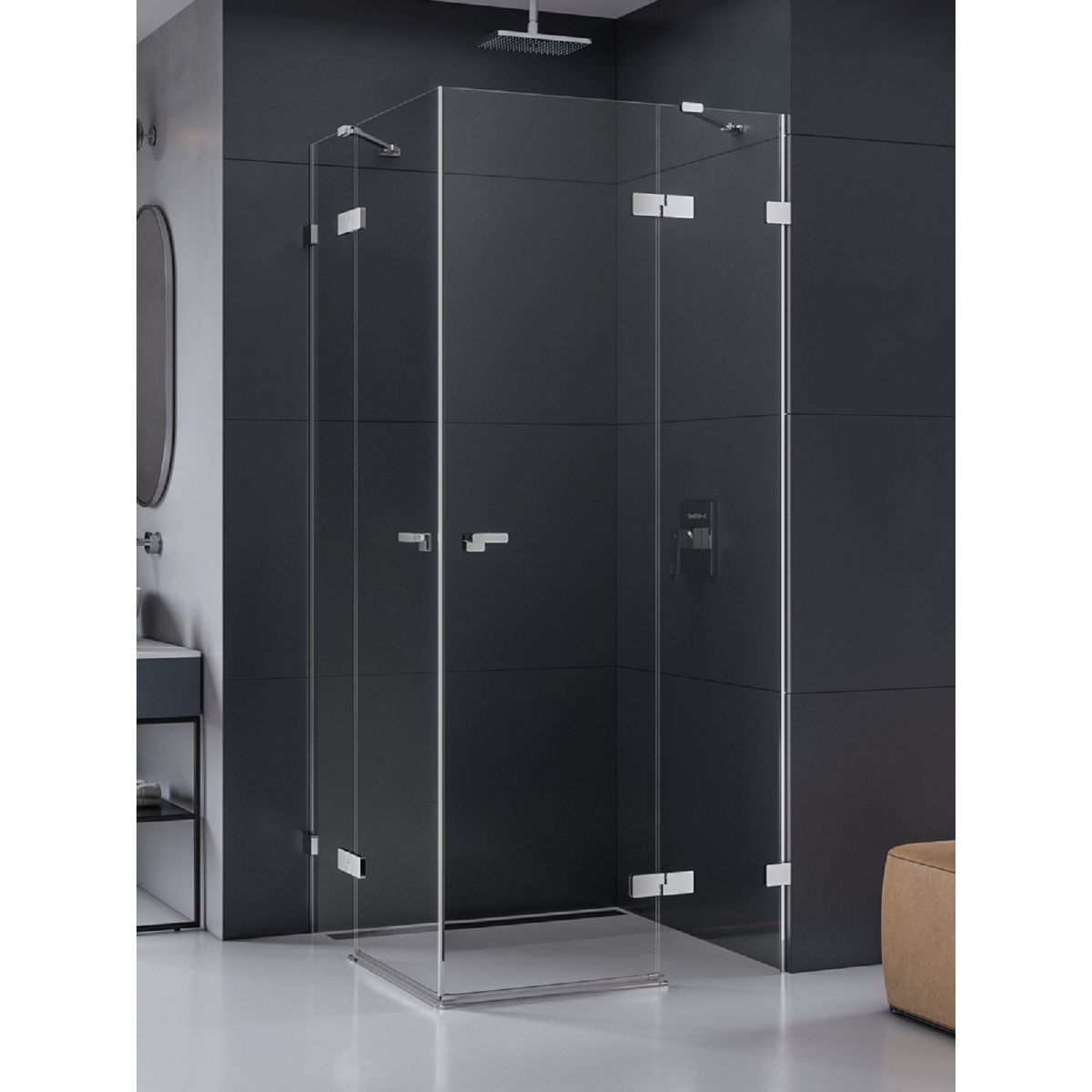 Le modèle Eventa présente d'élégants détails chromés avec une finition brillante. La cabine de douche est équipée d'un verre de sécurité trempé de 8 mm d'épaisseur avec revêtement de protection Active Shield 2.0. Une gouttière se trouve au bas de la porte, permettant d'évacuer l'eau du verre vers l'espace de douche. La cabine de douche peut être installée avec ou sans receveur.