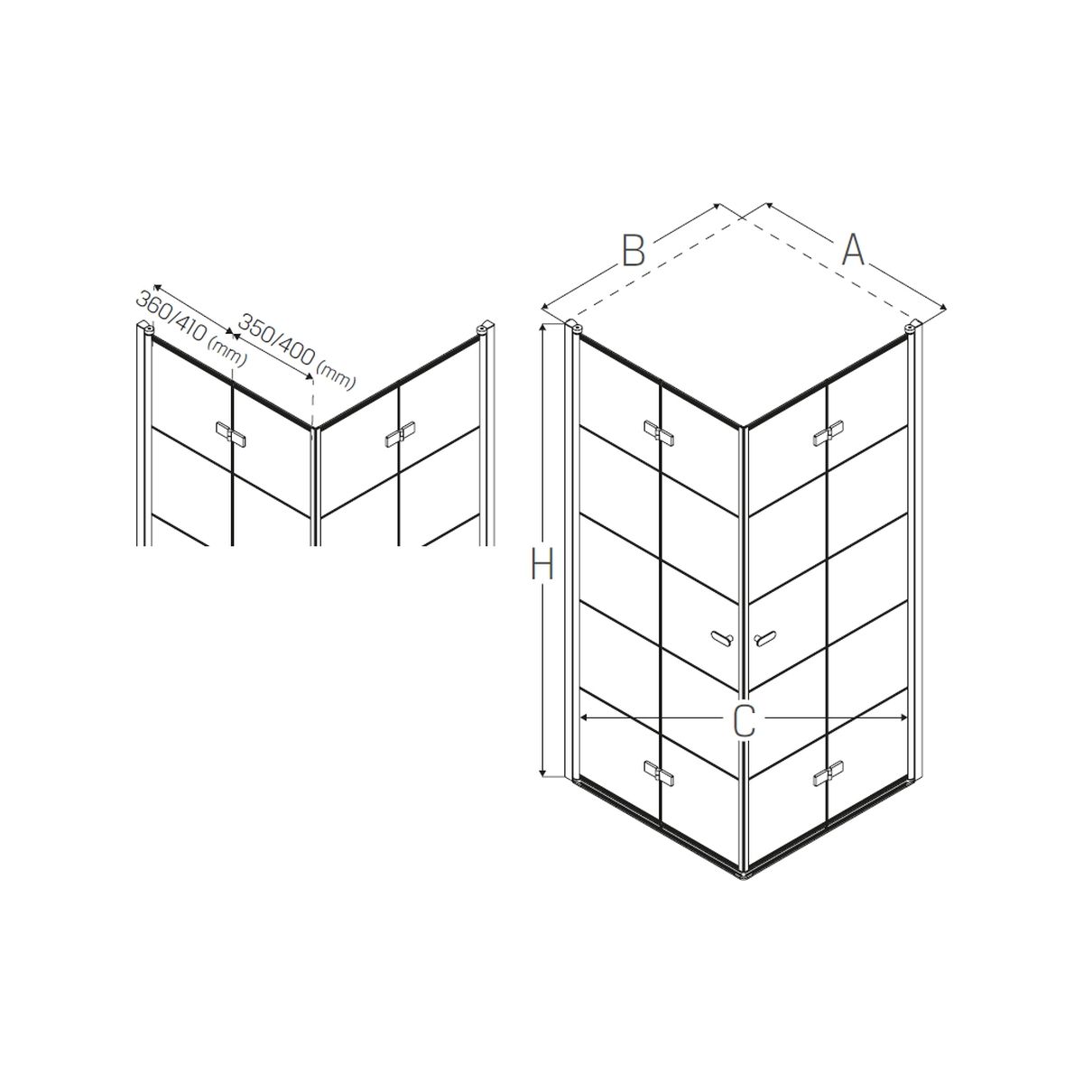 - largeur de la porte C : 113 cm
