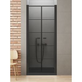 New Trendy New Soleo Black porte de douche 90 cm à ouverture basculante noir mat/verre à motif D-0281A