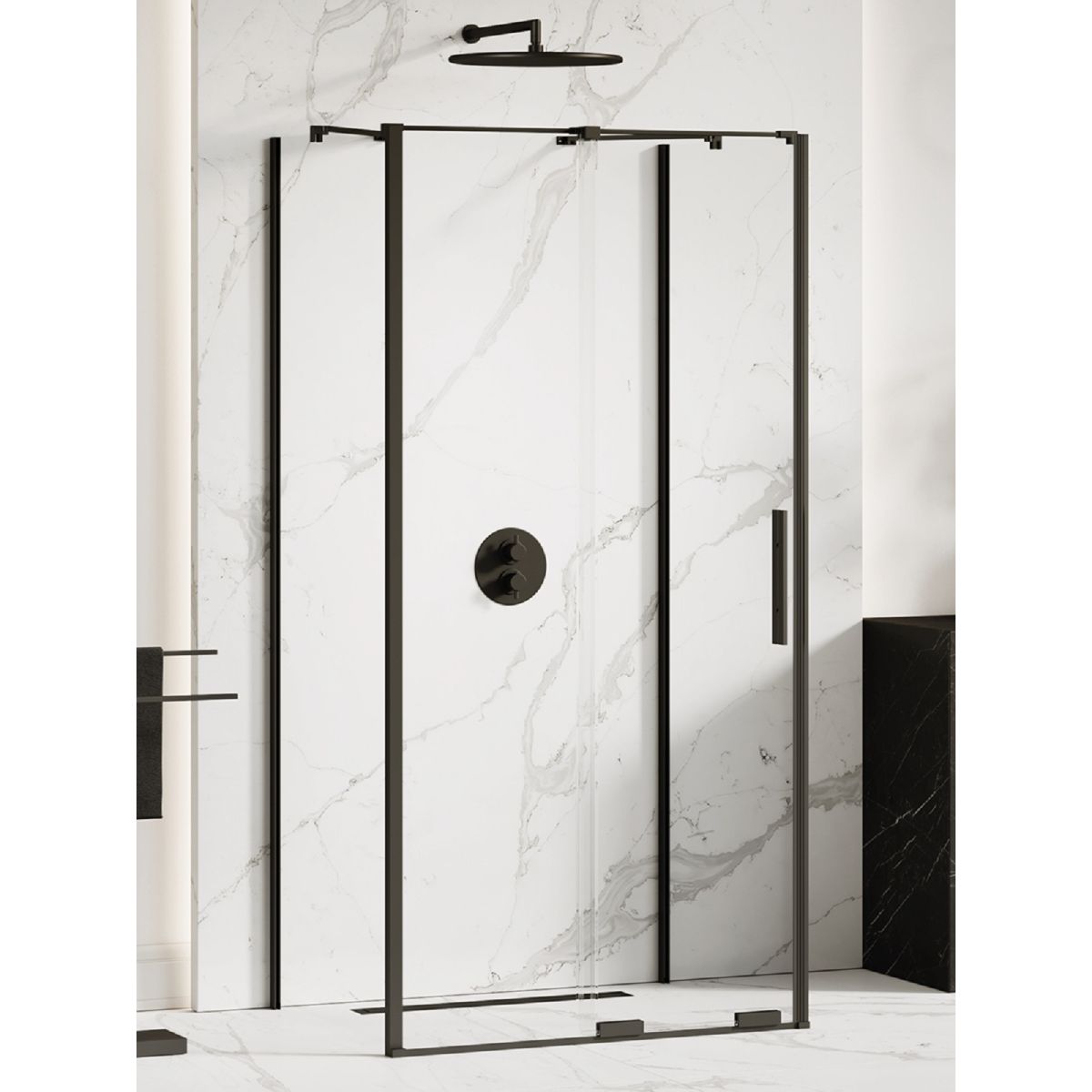Le modèle Smart Black présente d'élégants détails noirs avec une finition mate. Les cabines de douche sont équipées d'un verre de sécurité trempé de 8 mm d'épaisseur avec un revêtement de protection Active Shield 2.0. Les produits de cette collection sont uniquement équipés d'un système de coulissement par le bas, avec un guide de pointage dans la partie supérieure. Les cabines Smart peuvent être installées avec ou sans receveur de douche.