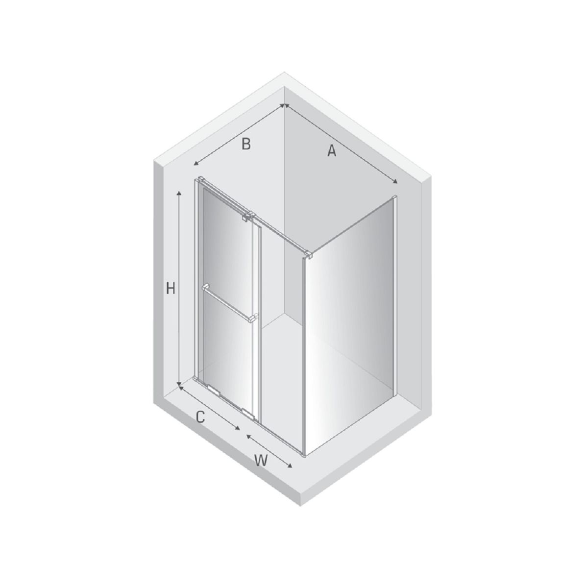 - largeur de la paroi fixe (C) : 52,5 cm