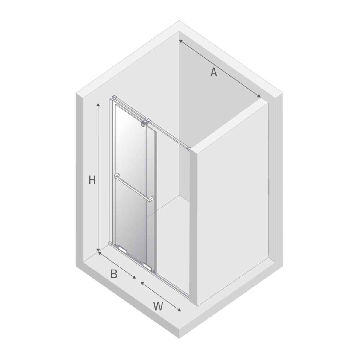 - largeur de la paroi fixe (B) : 77,5 cm