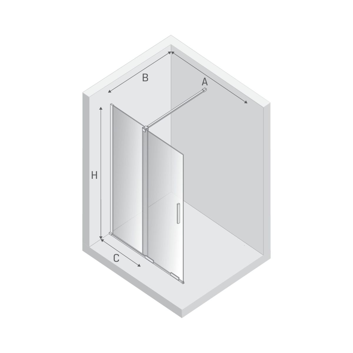 - largeur de la paroi fixe (C) : 54,5 cm