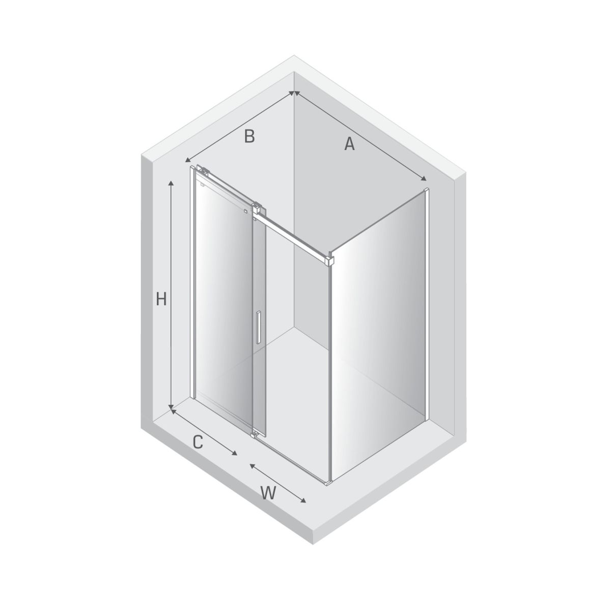 - largeur de la paroi fixe (C) : 56 cm