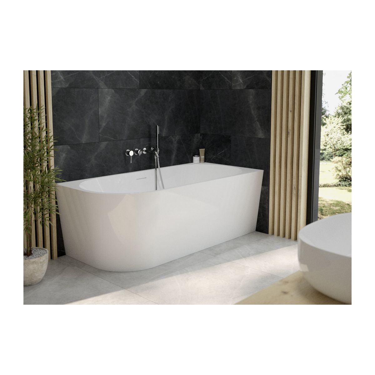La version d'angle spécialement conçue permet d'adapter la baignoire à la zone de douche, offrant la possibilité d'installer un pare-baignoire. Elle permet également de gagner de la place dans la salle de bains.