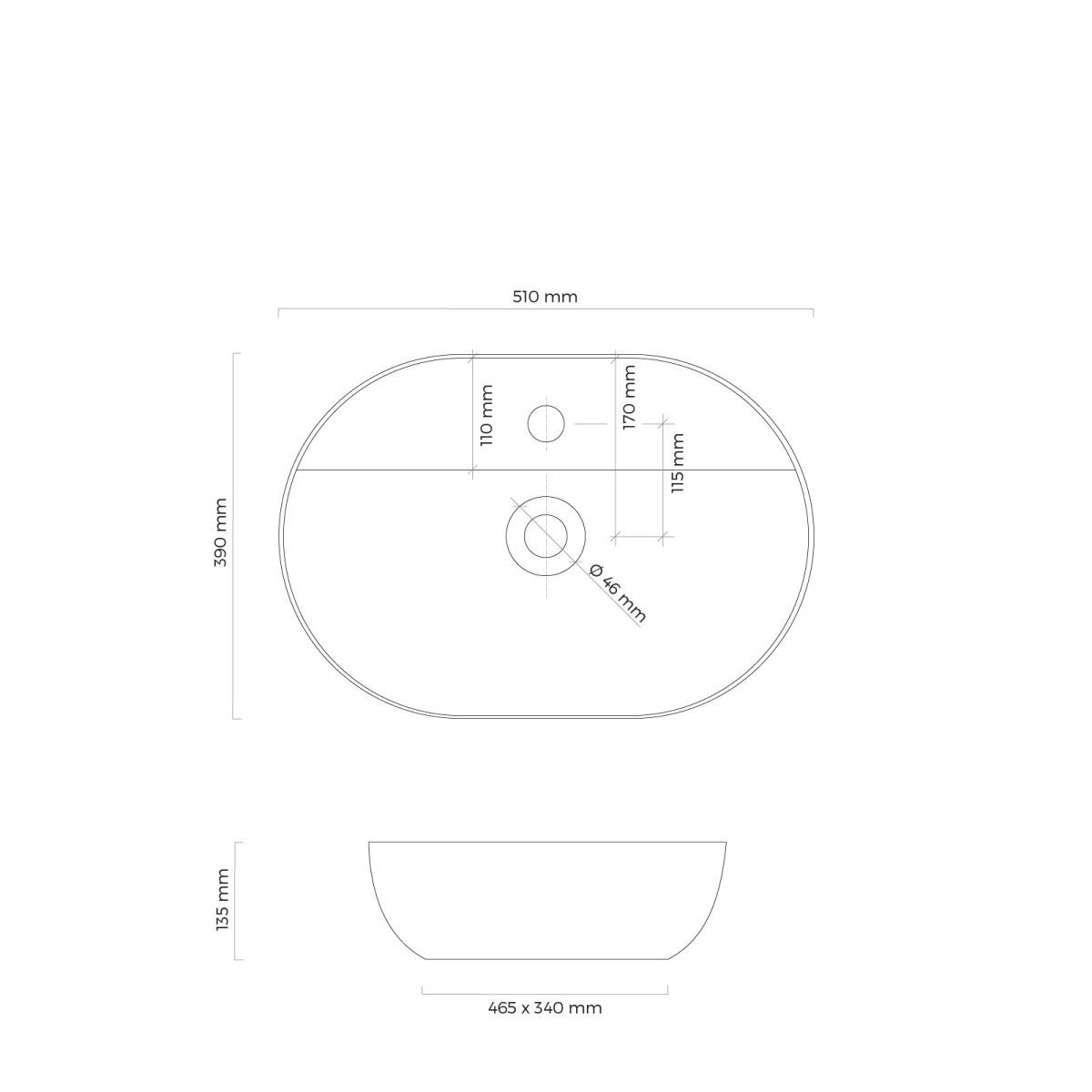 Oltens Hamnes lavabo 51x39 cm ovale à poser noir 41313300