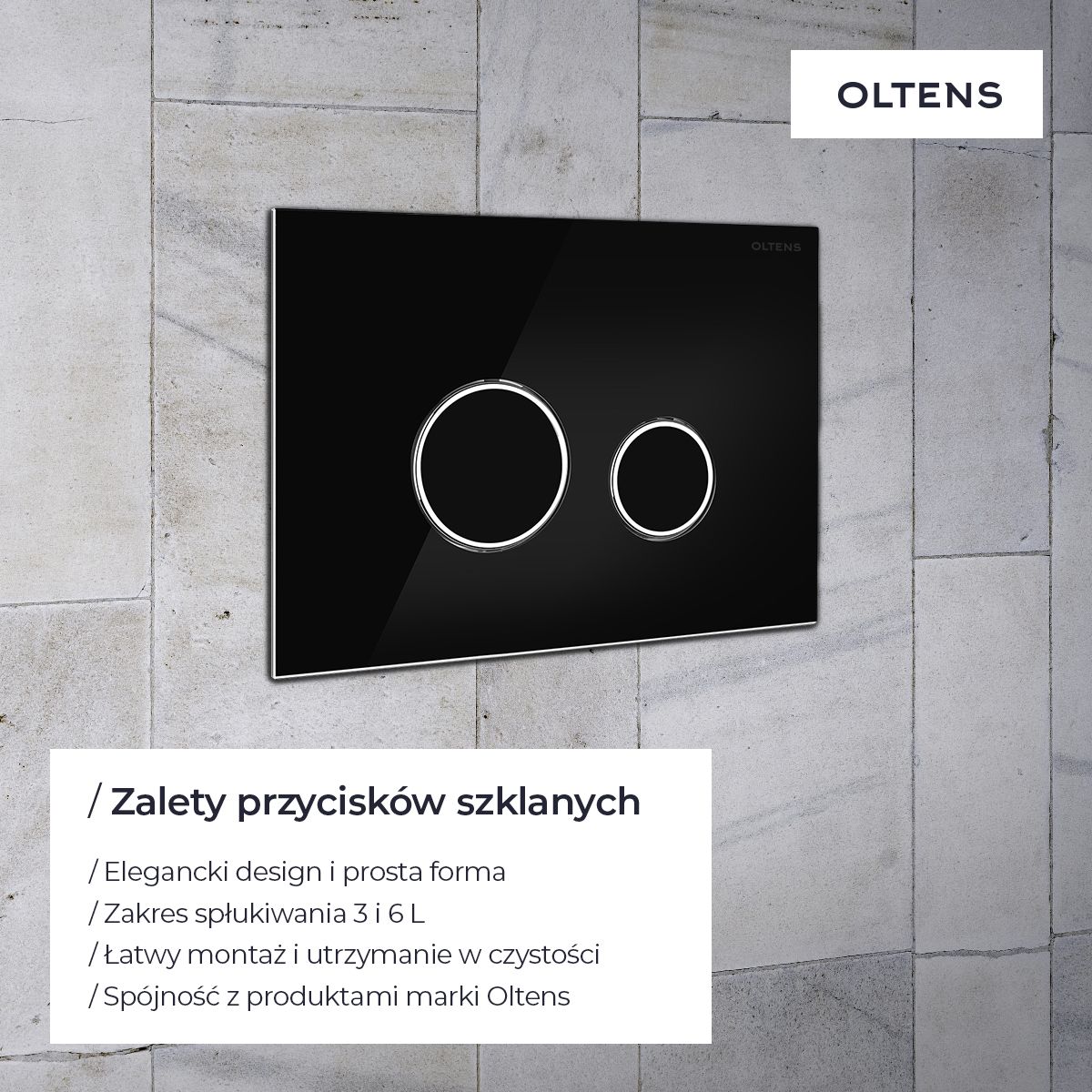 Lorsque nous décidons d'installer une cuvette de WC encastrée, nous devons être conscients que seuls celle-ci et le bouton seront visibles. Dans ce cas, il vaut mieux choisir un produit au design et à la fonctionnalité exceptionnels. Associez un bouton en verre aux cuvettes suspendues Oltens afin de créer un espace WC harmonieux et esthétique.