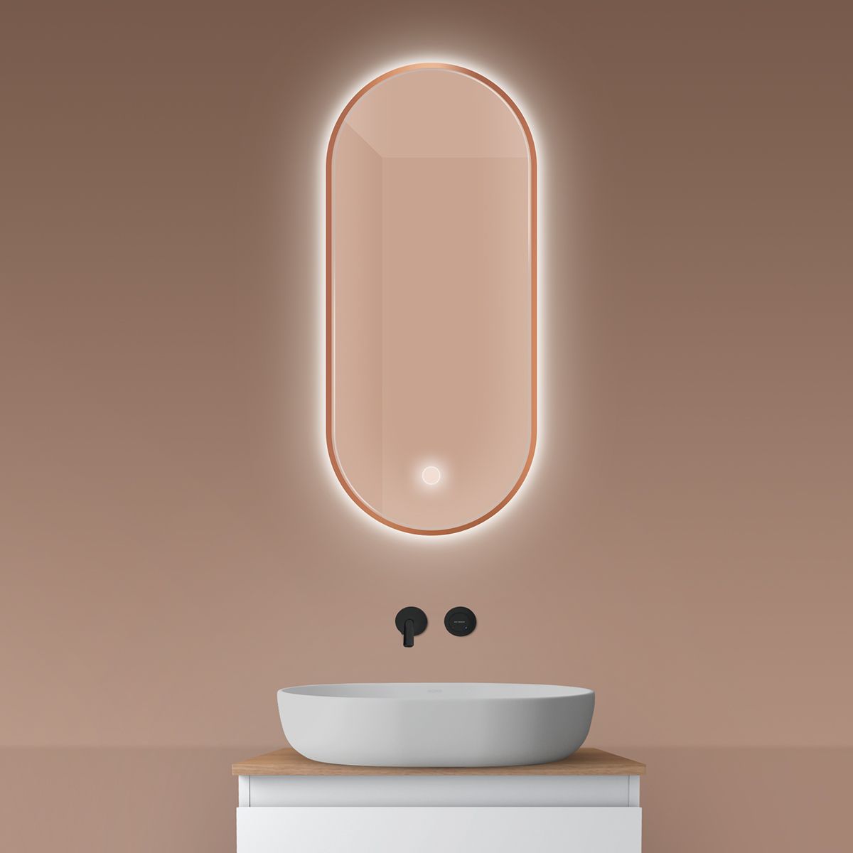Un cadre minimaliste en aluminium de haute qualité entoure le panneau de miroirs. Pour ceux qui préfèrent le minimalisme, une option sans cadre est disponible. Les miroirs Nordlis sont disponibles dans des formes rondes, ovales et rectangulaires. Un large éventail de formes et de couleurs permet de choisir facilement l'option qui s'adaptera parfaitement au style de votre salle de bains.