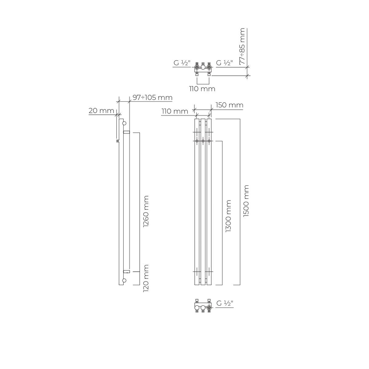 Oltens Stang radiateur de salle de bain décoratif 150x15 cm gris/graphite 55019400