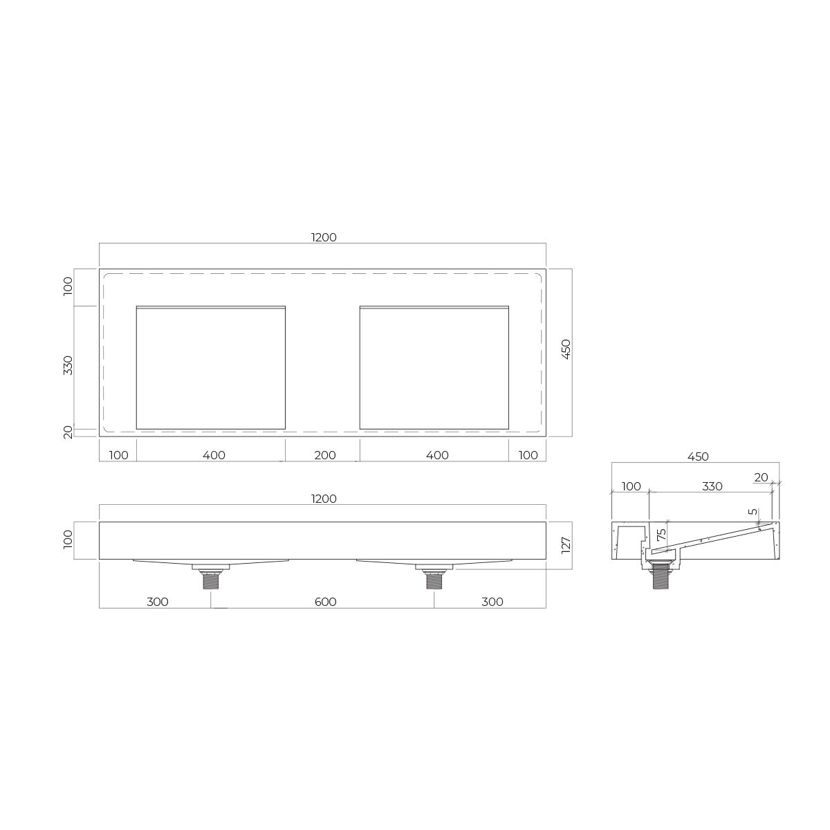 Oltens Stila lavabo 120x45 cm rectangulaire classique-double blanc 40004900