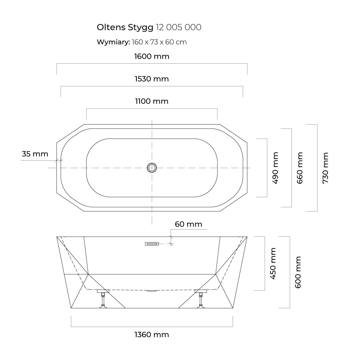 La baignoire ovale haut de gamme Oltens Stygg a été conçue selon les dernières tendances en matière de design. La combinaison de motifs géométriques caractéristiques des solutions de conception modernes et d'un blanc classique a fait de cette baignoire un véritable chef-d'œuvre. Apportez donc une touche de luxe raffiné à votre salle de bains et profitez-en chaque jour.