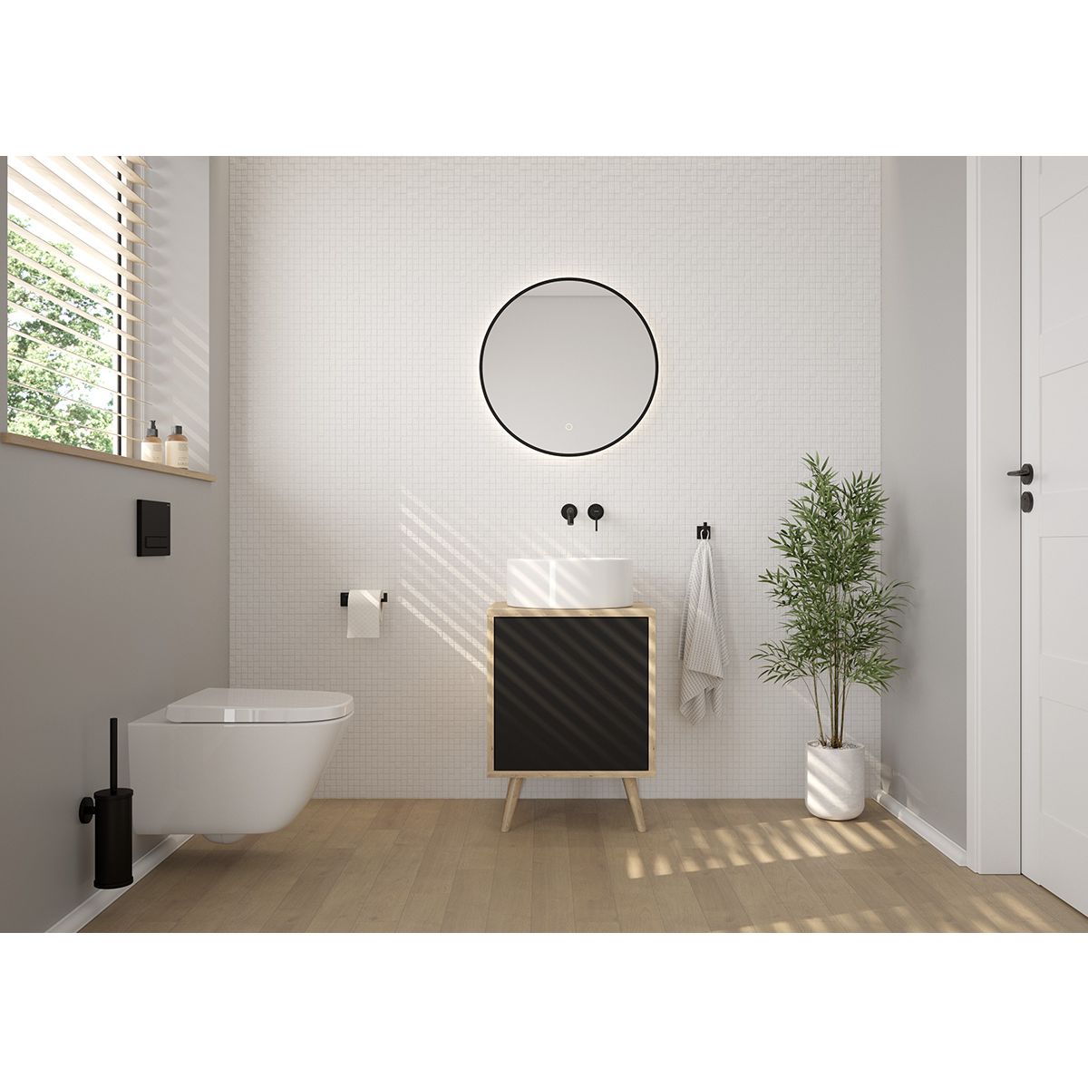 Le porte-rouleau de papier toilette dans la salle de bains doit répondre à des critères tant esthétiques que pratiques. Le porte-rouleau de la marque Oltens répond à ces critères. Grâce aux matériaux utilisés et à sa conception, ce porte-rouleau se caractérise par une grande durabilité et un design moderne. Le porte-rouleau est fabriqué en laiton recouvert d'une couche de chrome, puis recouvert de peinture noire, ce qui le rend très durable, esthétique et élégant. La fixation du porte-rouleau est dissimulée dans le produit. Le kit de fixation murale résistant à la corrosion est inclus.