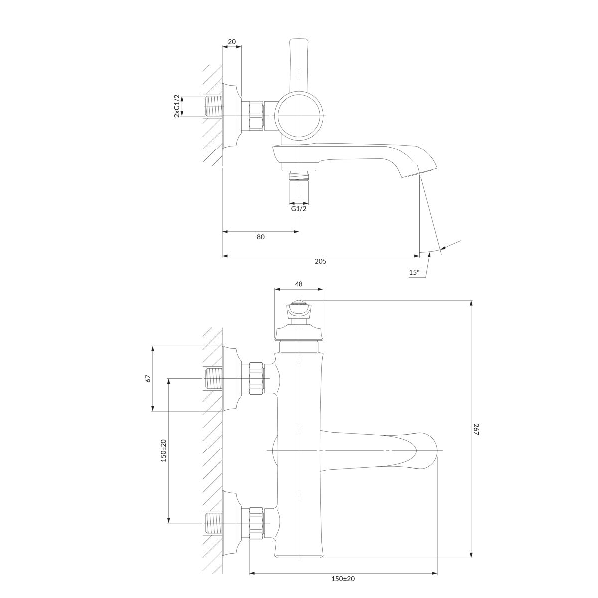- portée du bec à partir de la surface des carreaux : 20,5 cm