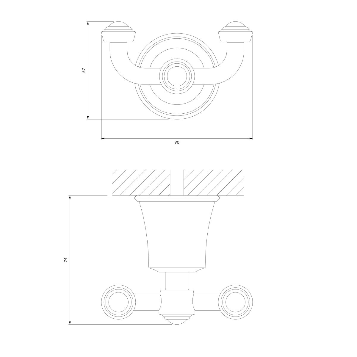- largeur : 9 cm, hauteur : 6 cm, distance du mur : 7 cm