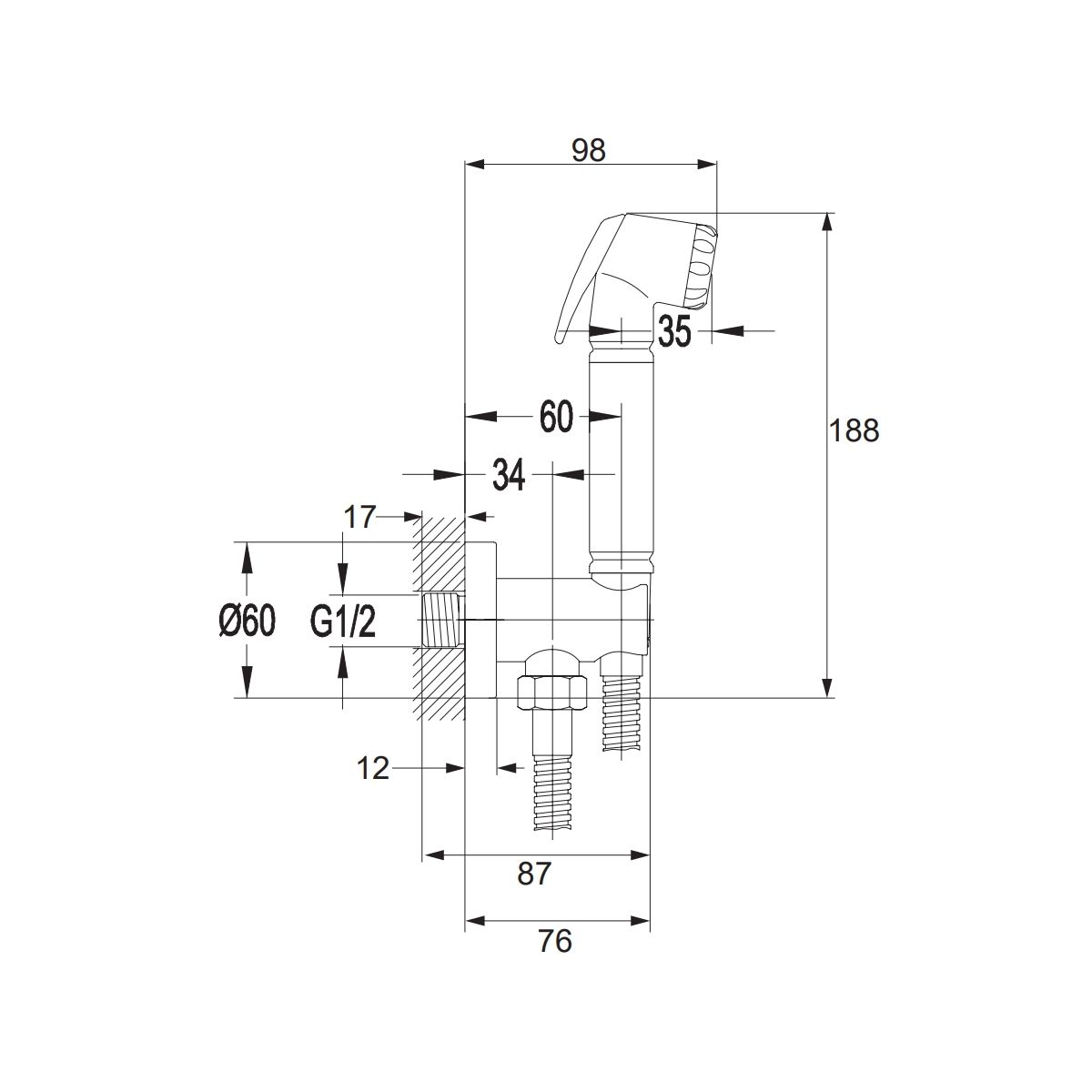 - Inclus: tuyau flexible de douche, raccord coudé, douchette bidet