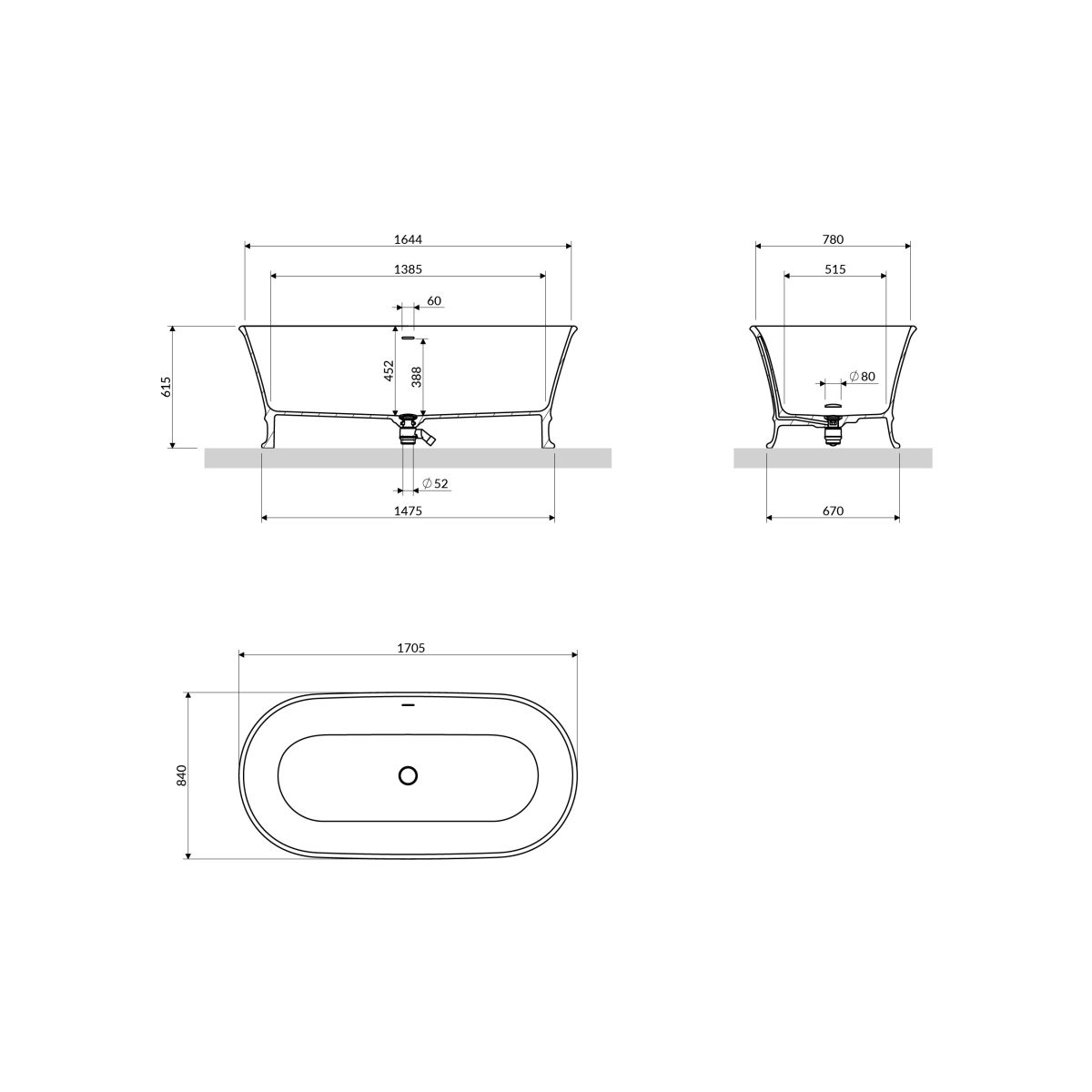 Omnires Classica M+ baignoire autoportante 170x84 cm ovale blanc CLASSICA170WWZPBM