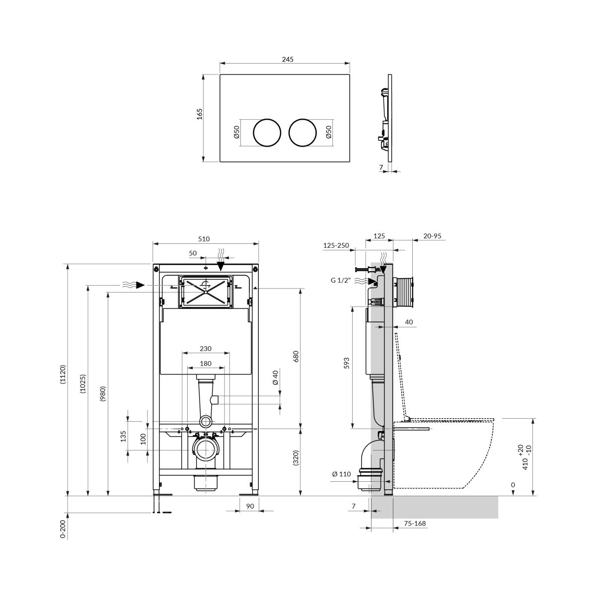 SET DE CHASSE D'EAU | STRONGFRAME cadre d'installation pré-mural pour cuvette + bouton de déclenchement de la chasse d'eau MINIMAL