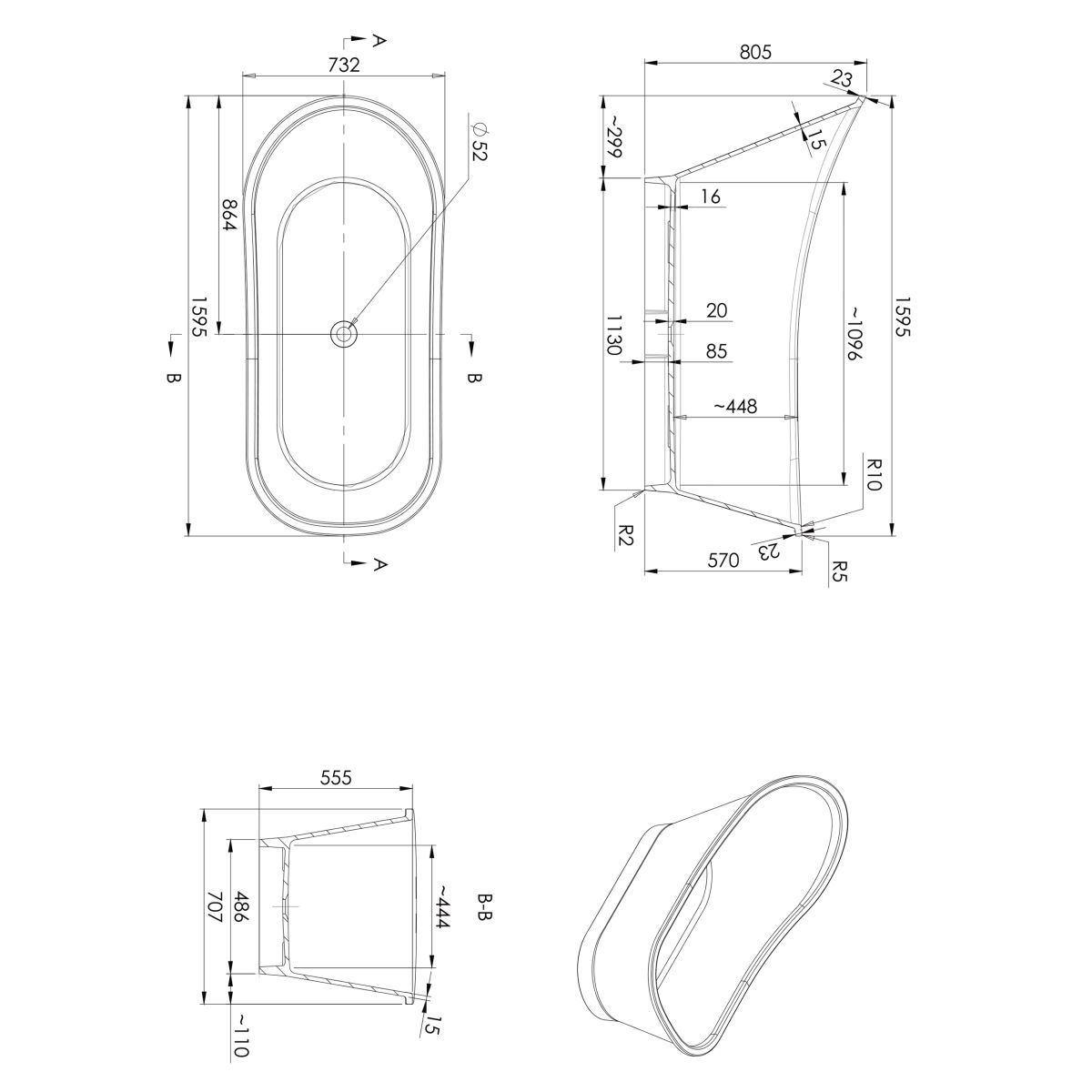 La baignoire est fabriquée à partir d'un matériau composite innovant, dont le principal composant est la roche dolomitique. Cette technologie garantit une exécution parfaite de chaque détail, tout en offrant une durabilité et une résistance exceptionnelles. La surface de la baignoire, naturellement réfléchissante et brillante, est de couleur blanche classique.