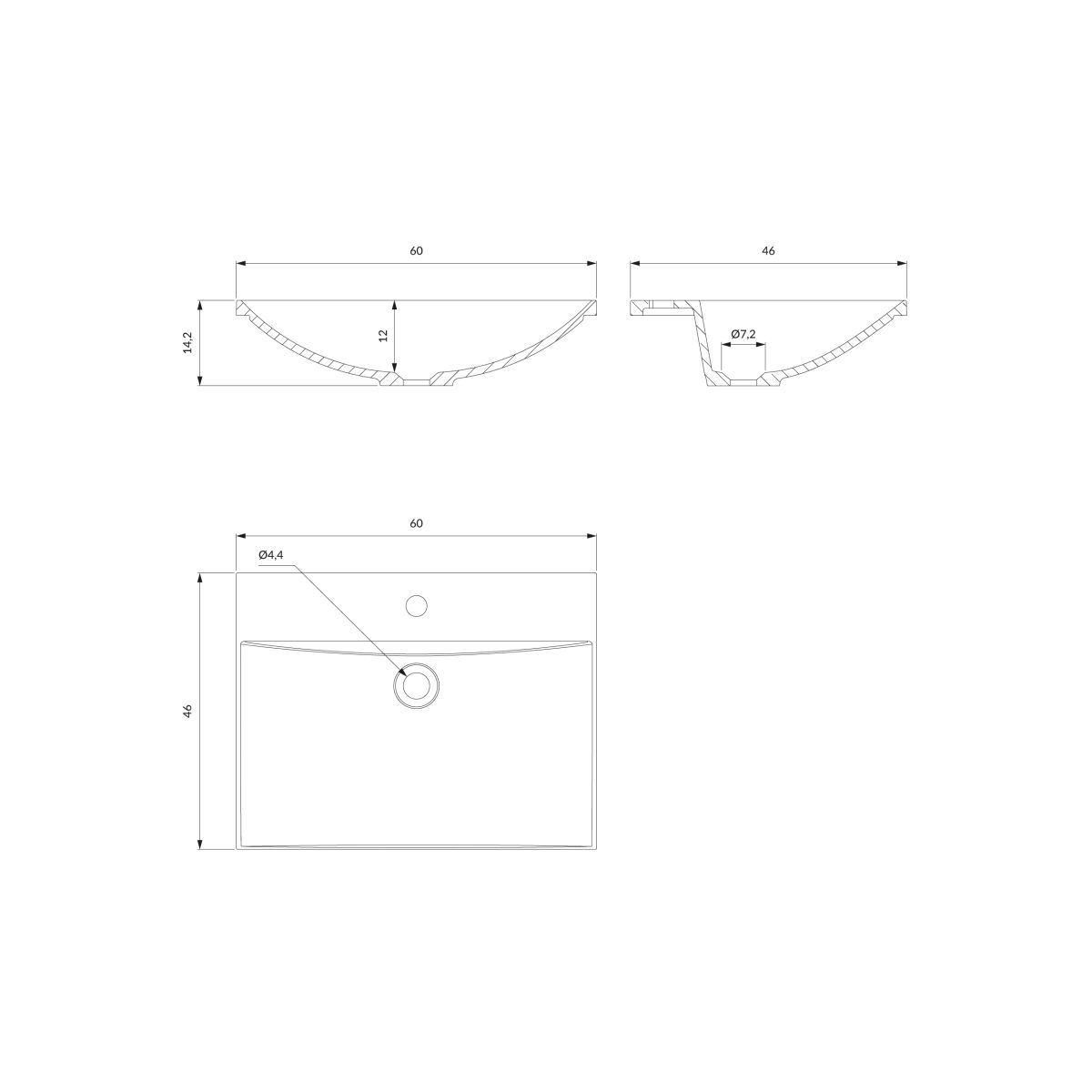 Omnires Naxos M+ lavabo 60x46 cm rectangulaire de meuble blanc NAXOSF600BP