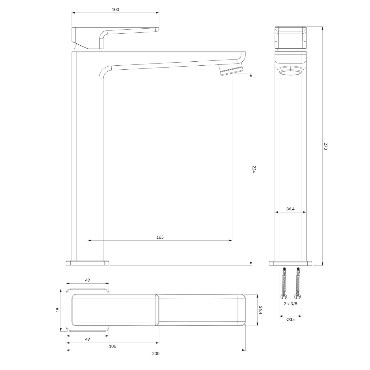 - hauteur totale du mélangeur : 27,3 cm