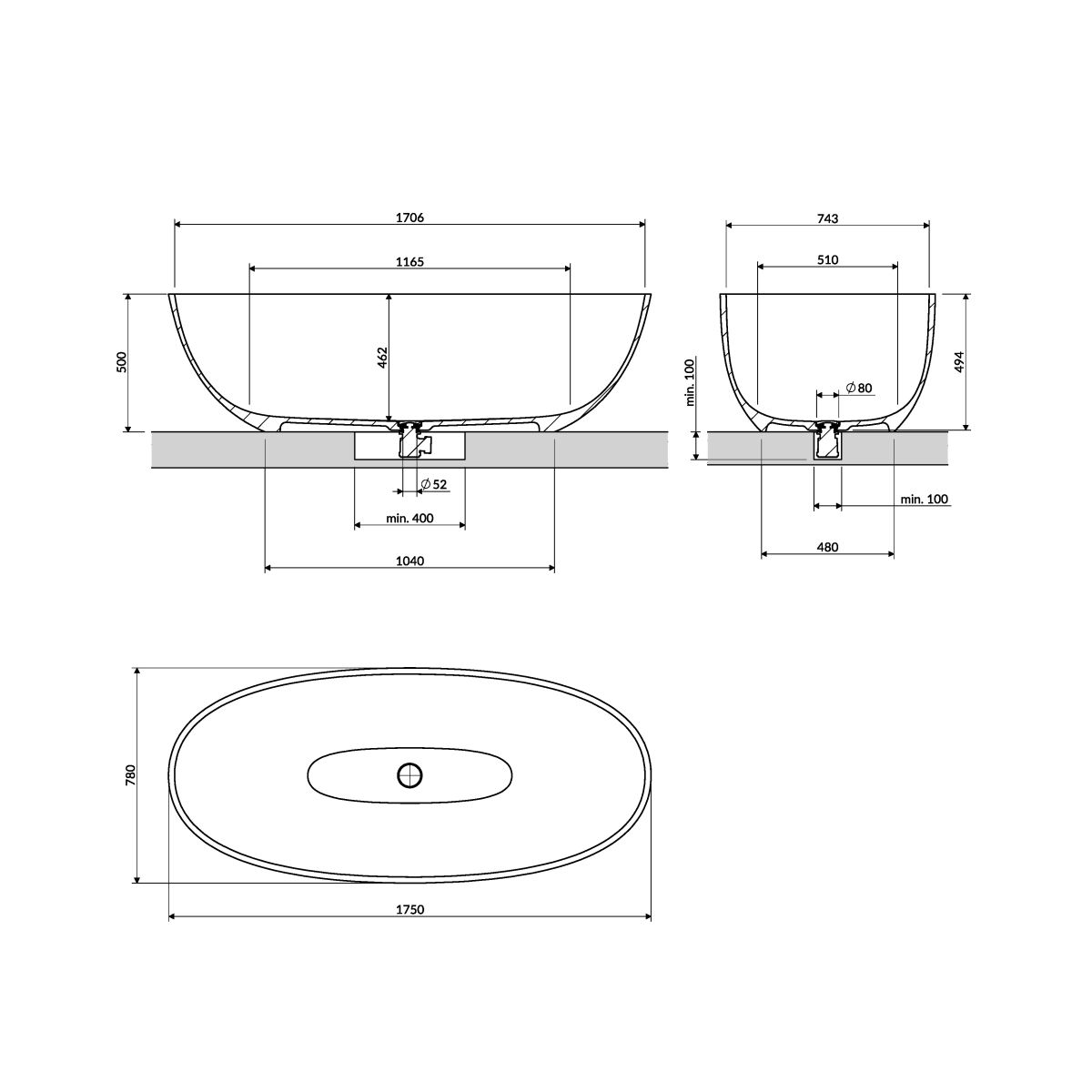 SHELL M+ | baignoire à poser, 175 x 78 cm