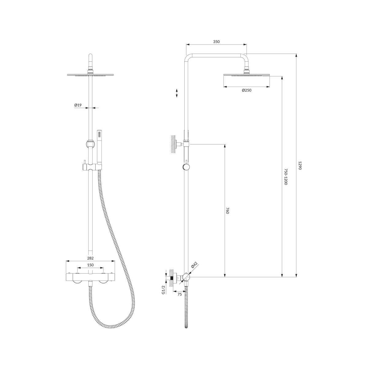 - douchette en laiton, dimensions : ø25 cm, portée du mur : 35 cm