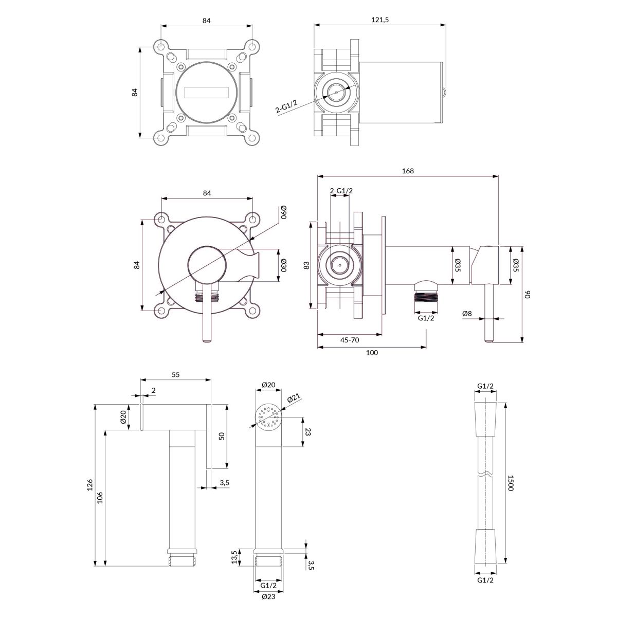 - mitigeur de bidet pour installation encastrée, raccord encastré