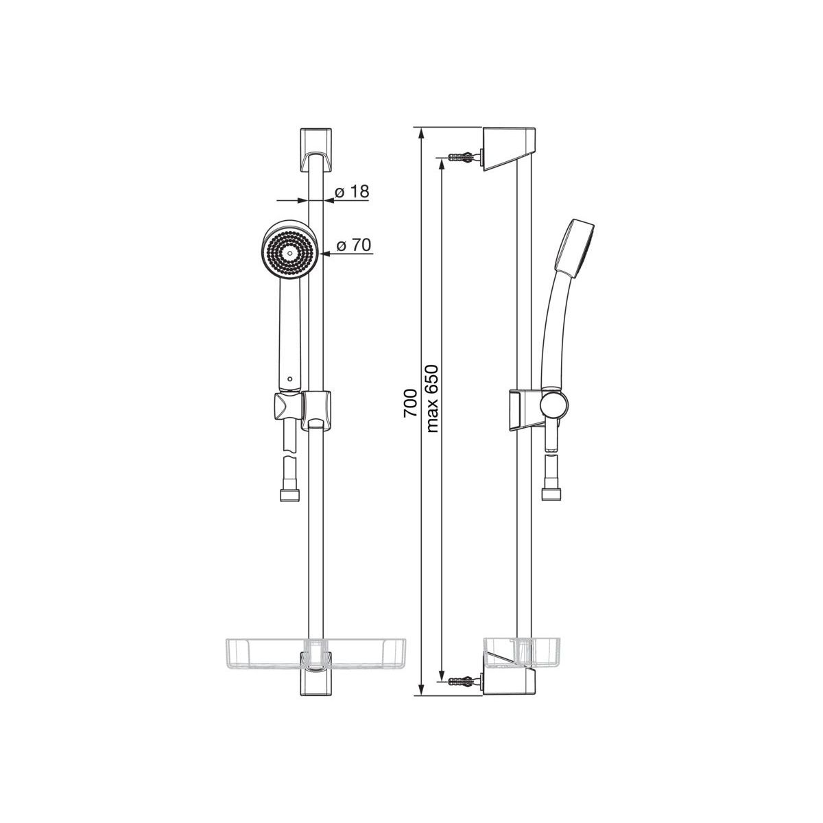 - Inclus: pommeau de douche, tuyau flexible de douche, barre de douche, porte-savon