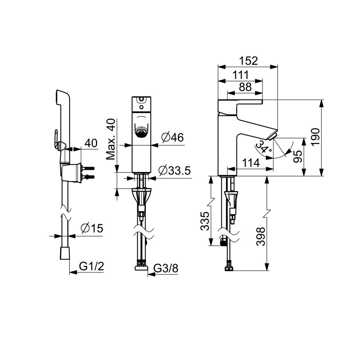 - parties mécaniques : cartouche céramique ø 30 mm pour le réglage du débit et de la température