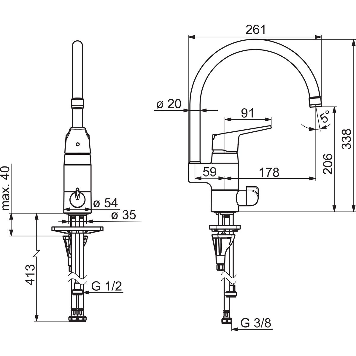 - mélangeur de cuisine avec bec haut et valve céramique pour lave-vaisselle