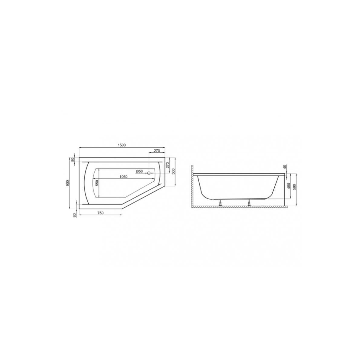 Polimat Selena baignoire d’angle 150x90 cm côté gauche blanc 00386