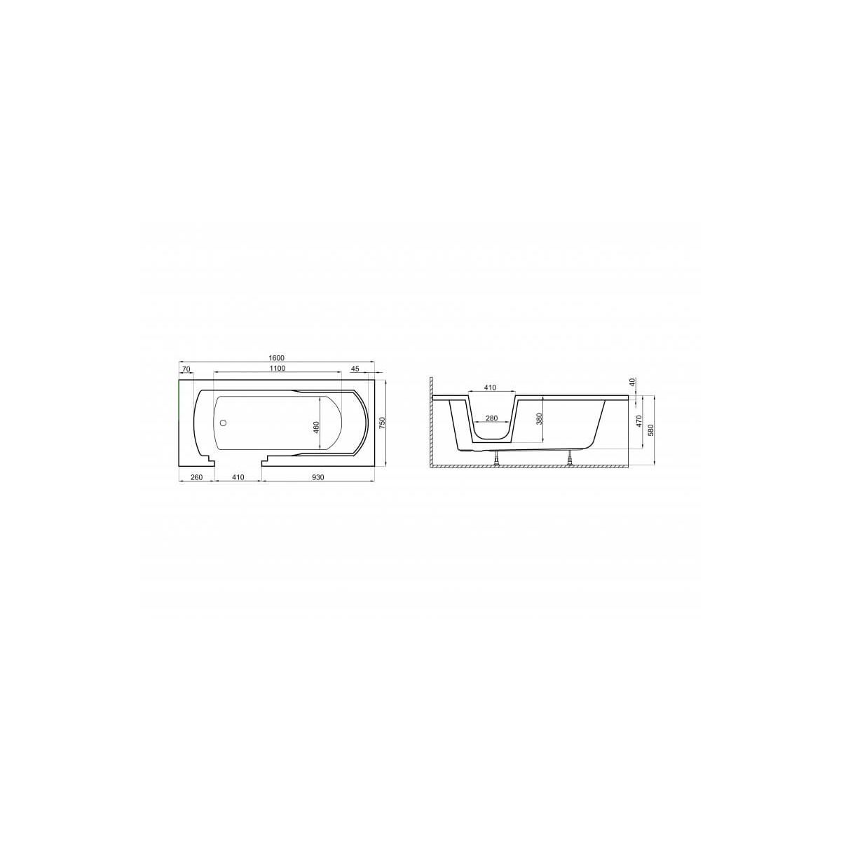 Polimat Vovo baignoire rectangulaire avec porte 160x75 cm blanc 00741
