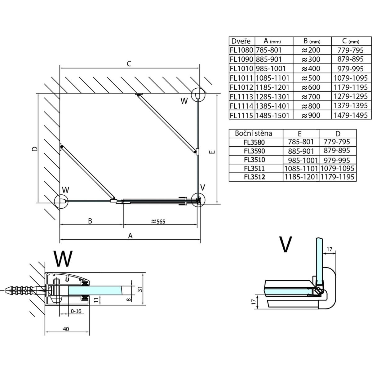 Polysan Fortis Line paroi de douche 90 cm chrome brillant/verre transparent FL3590