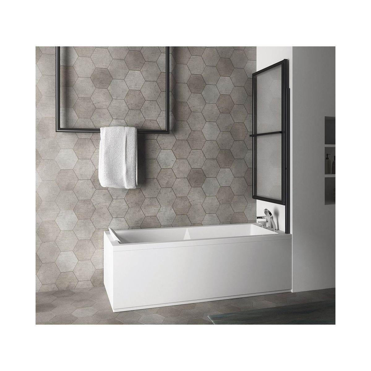 Polysan Olbia paroi de baignoire 71 cm monobloc noir mat/verre transparent 30336B