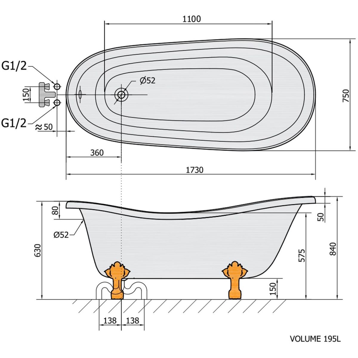 - volume : 195 litres