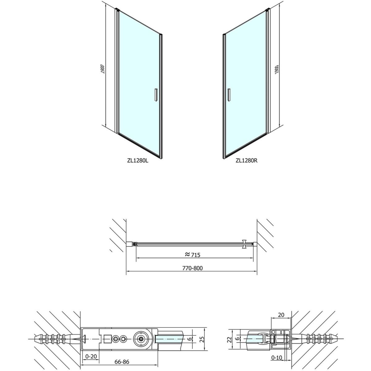 Polysan Zoom Line porte de douche 80 cm à ouverture basculante chrome brillant/verre transparent ZL1280