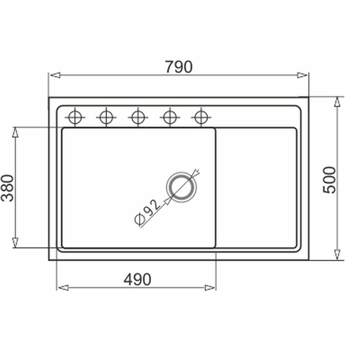 - 5 trous fraisés pour le positionnement libre de mélangeurs et d'autres accessoires, par exemple distributeurs de liquides, bouchons automatiques, etc