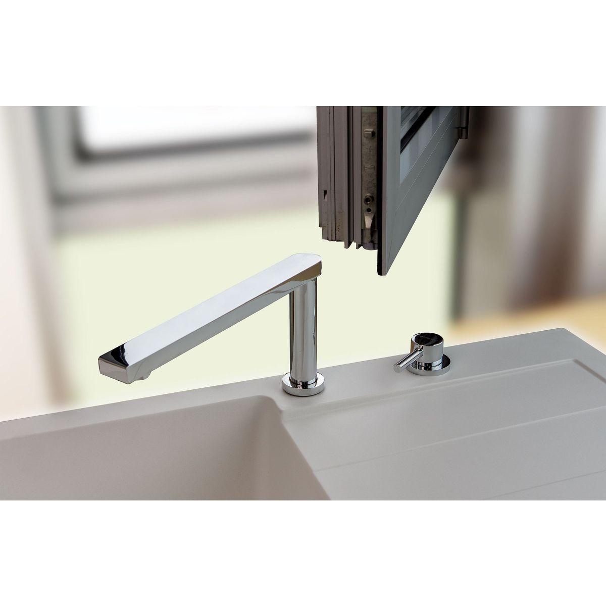 - idéal pour une utilisation près d'une fenêtre, où un mitigeur standard pourrait empêcher son ouverture