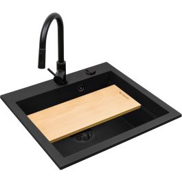 Siros (57x51.5) 1B évier à un bac complet avec nouveau mitigeur Idea avec bec extractible - tous les éléments en noir.