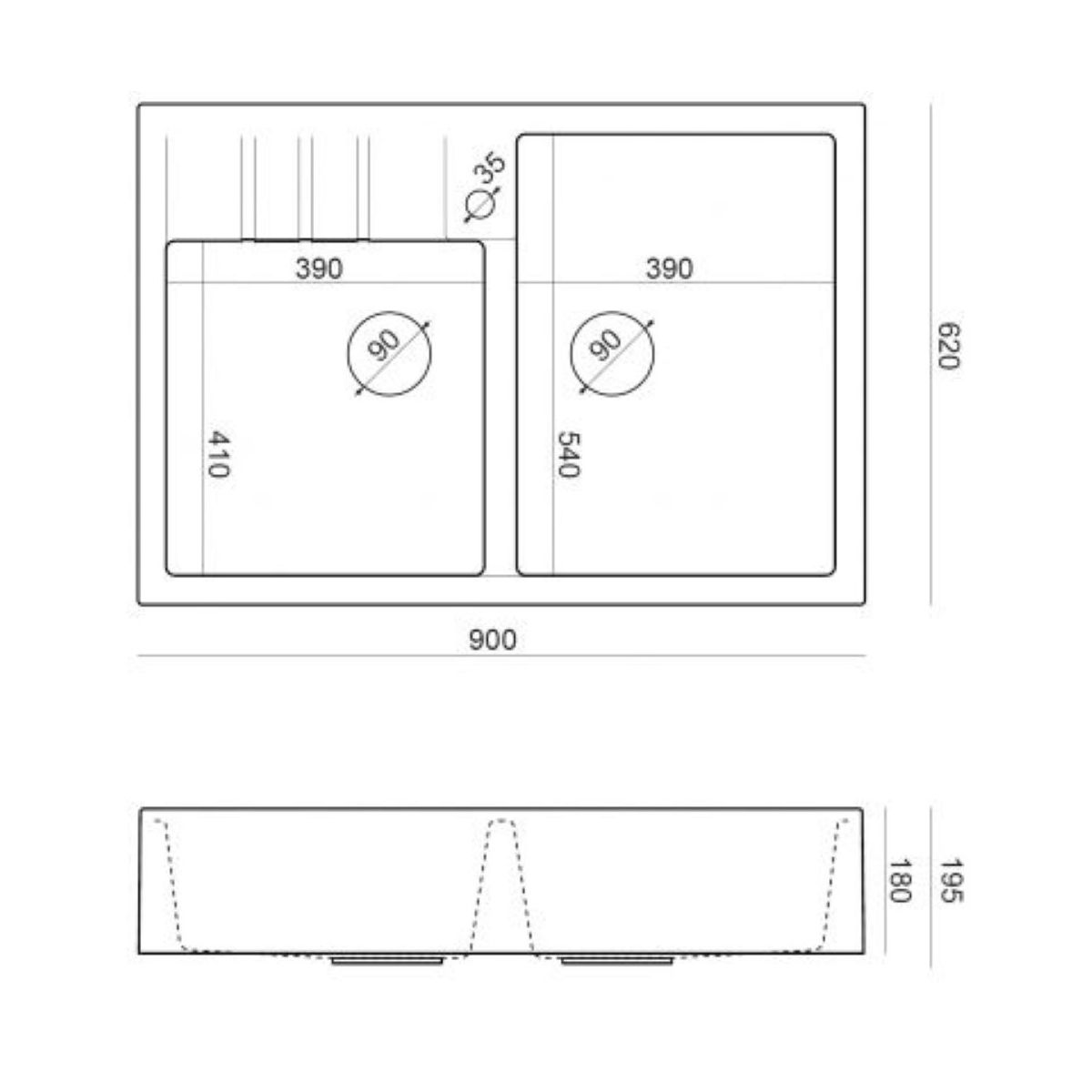 Quadron Bill évier graniteq 90x62 cm noir HCQB9062U8_PVDG1