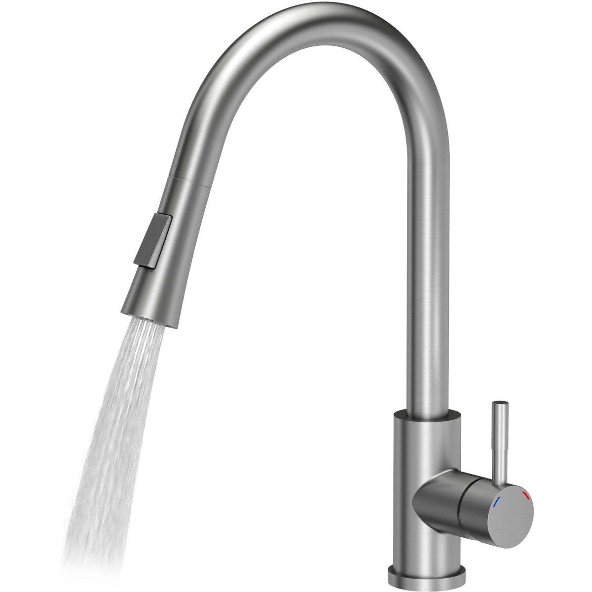 - mitigeur en acier de 42,5 cm de haut avec douchette extractible et interrupteur pour la fonction douche (mitigeur avec système d'assemblage QFix, c'est-à-dire un écrou sans outils supplémentaires)