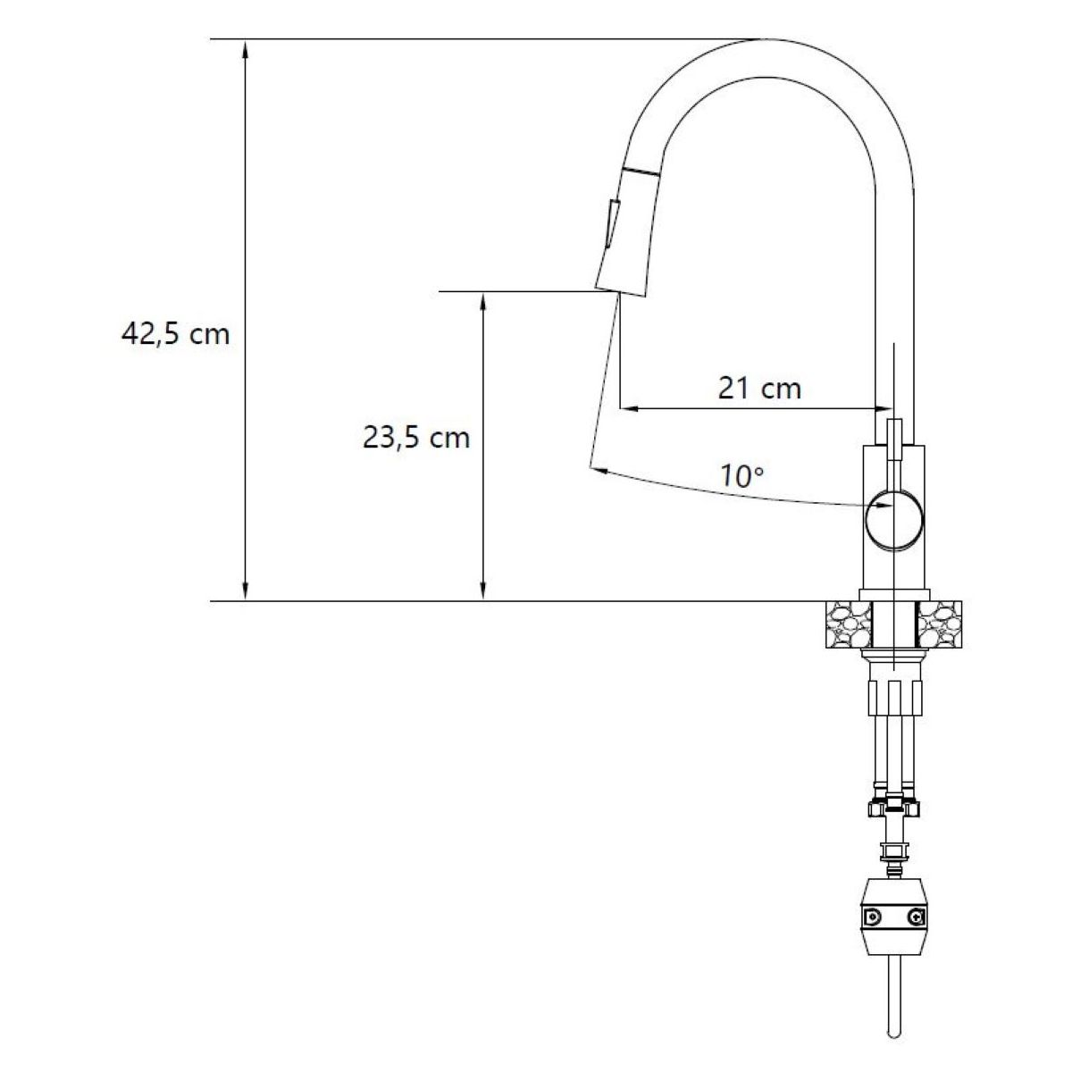 - mitigeur en acier de 42,5 cm de haut avec douchette extractible et interrupteur pour la fonction douche (mitigeur avec système d'assemblage QFix, c'est-à-dire un écrou sans outils supplémentaires)